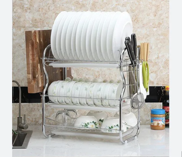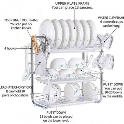 This 3-layer dish drainer rack combines durability, style, and practicality. Whether you need to maximize space or keep your dishes clean and organized, this rack is the perfect addition to your kitchen.